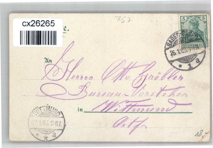 30838347 alte Postkarte Baden-Baden Landes Bad Friedrich Bad Augusta Bad Trinkhalle Musik Kiosk postalisch gelaufen KatCode: 11110008211000