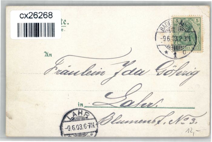 30838350 alte Postkarte Baden-Baden Landes Bad Friedrich Bad Augusta Bad Trinkhalle Musik Kiosk postalisch gelaufen KatCode: 11110008211000