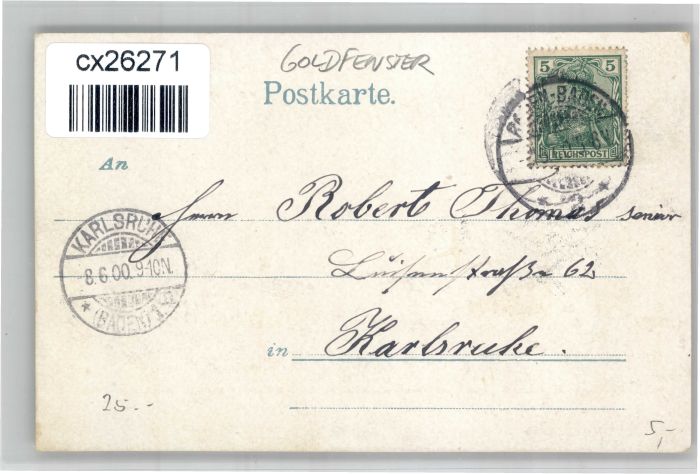 30838285 alte Postkarte Baden-Baden Leopoldsplatz Goldfenster postalisch gelaufen KatCode: 11110008211000