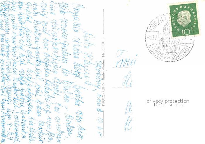 72887379 alte Postkarte Baden-Baden mit Merkur Kurhaus Stadtblick Goenner Anlage Spielsaal Skourdza Kapelle Merkur Oospartie Trinkhalle postalisch gelaufen Erhaltung siehe scans [WerneD78] KatCode: 11110008211000