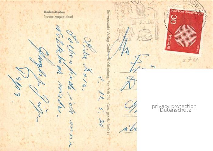 73128462 alte Postkarte Baden-Baden Neues Augustabad postalisch gelaufen Erhaltung siehe scans [NatalD47] KatCode: 11110008211000