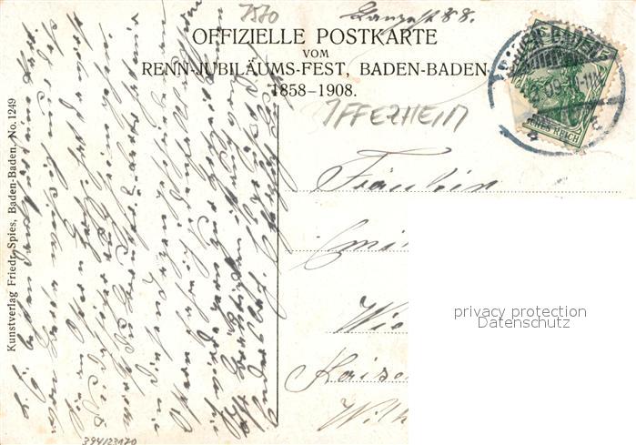33274206 alte Postkarte Baden-Baden Renn-Jubilaeums-Fest postalisch gelaufen Erhaltung siehe scans [NatalD47] KatCode: 11110008211000