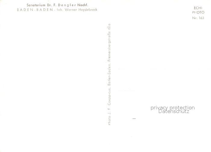72969657 Baden-Baden Sanatorium Dr. F. Dengler postalisch nicht gelaufen Erhaltung siehe scans [LiesaD40] KatCode: 11110008211000
