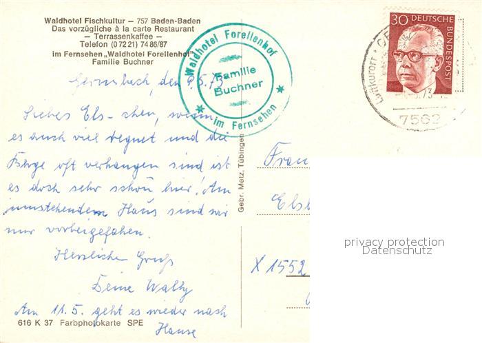 73107320 alte Postkarte Baden-Baden Waldhotel Fischkultur postalisch gelaufen Erhaltung siehe scans [NatalD47] KatCode: 11110008211000