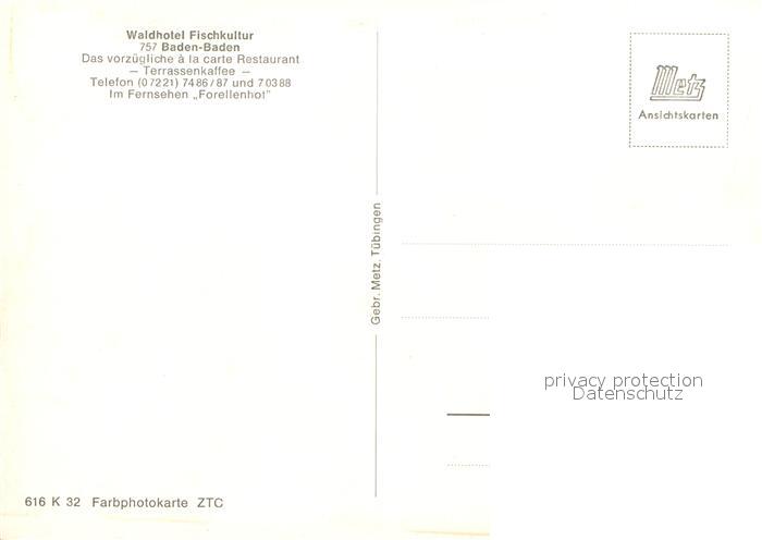 73010104 Baden-Baden Waldhotel Fischkultur postalisch nicht gelaufen Erhaltung siehe scans [WerneD78] KatCode: 11110008211000