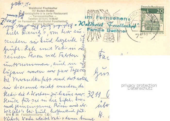 73775344 alte Postkarte Baden-Baden Waldhotel Fischkultur Fliegeraufnahme postalisch gelaufen Erhaltung siehe scans [WerneD78] KatCode: 11110008211000