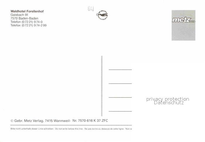 72913764 Baden-Baden Waldhotel Forellenhof Fliegeraufnahme postalisch nicht gelaufen Erhaltung siehe scans [LiesaD40] KatCode: 11110008211000