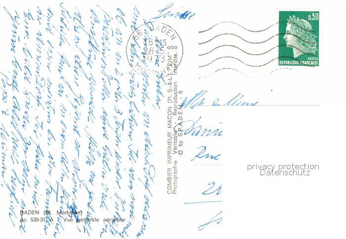 12700391 carte postale Baden Morbihan Gesamtansicht postalisch gelaufen Erhaltung siehe scans [AndreD76] KatCode: 11170056356008