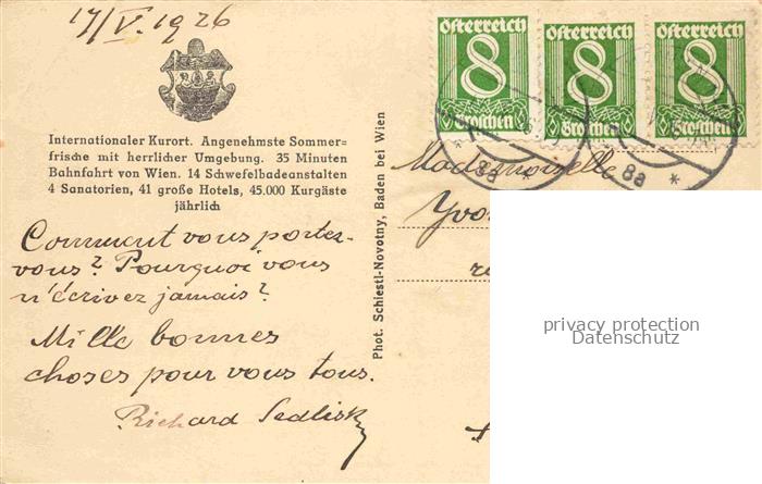 74075244 alte Postkarte Baden Wien AT Kurhaus der Stadt Restauration und Cafe postalisch gelaufen Erhaltung siehe scans [WerneD78] KatCode: 11390127030604