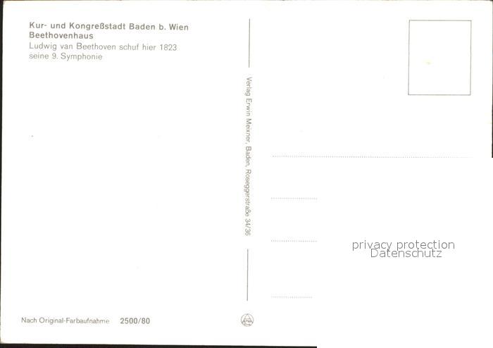72105473 Baden Wien Beethovenhaus postalisch nicht gelaufen KatCode: 11390127030604
