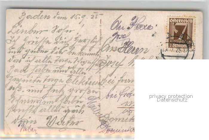 43106715 alte Postkarte Baden Wien Doblhoffpark mit Teich postalisch gelaufen Erhaltung siehe scans [FriedD77] KatCode: 11390127030604