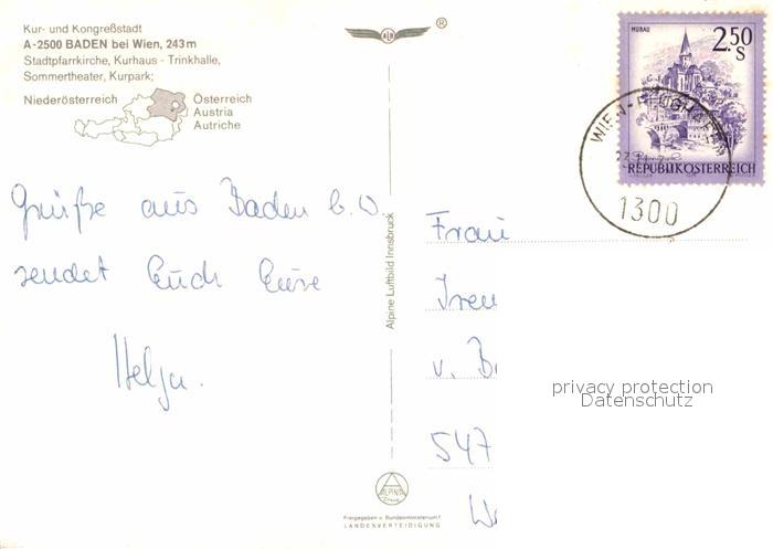 72917300 alte Postkarte Baden Wien Fliegeraufnahme postalisch gelaufen Erhaltung siehe scans [KathaD81] KatCode: 11390127030604