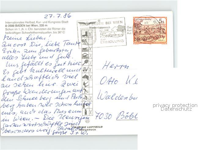 72256837 alte Postkarte Baden Wien Fliegeraufnahme postalisch gelaufen Erhaltung siehe scans KatCode: 11390127030604