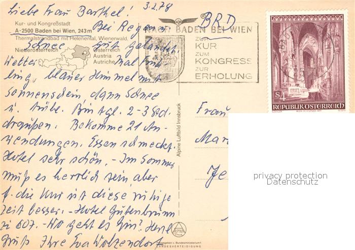 73044430 alte Postkarte Baden Wien Fliegeraufnahme Schwimmbad postalisch gelaufen Erhaltung siehe scans [KathaD81] KatCode: 11390127030604