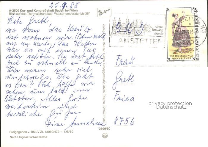71952961 alte Postkarte Baden Wien Fliegeraufnahme Thermalbad postalisch gelaufen KatCode: 11390127030604