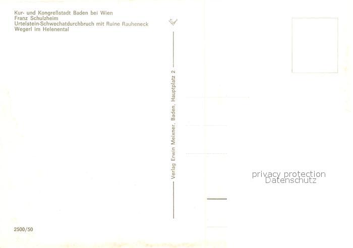 73125204 Baden Wien Franz Schulzheim Ruine Rauheneck postalisch nicht gelaufen Erhaltung siehe scans [NatalD47] KatCode: 11390127030604