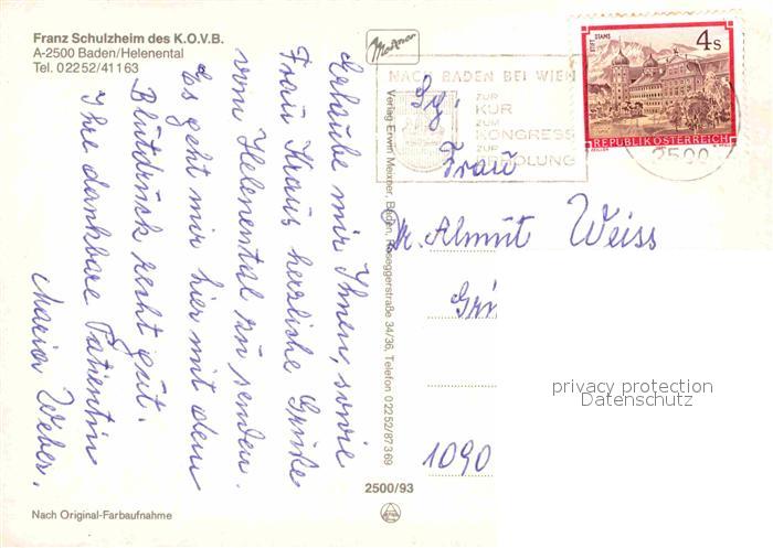 72617698 alte Postkarte Baden Wien Franz Schulzheim postalisch gelaufen Erhaltung siehe scans [NatalD47] KatCode: 11390127030604