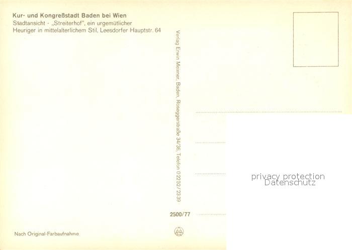73597795 Baden Wien Heuriger Streiterhof postalisch nicht gelaufen Erhaltung siehe scans [PaolaD17] KatCode: 11390127030604