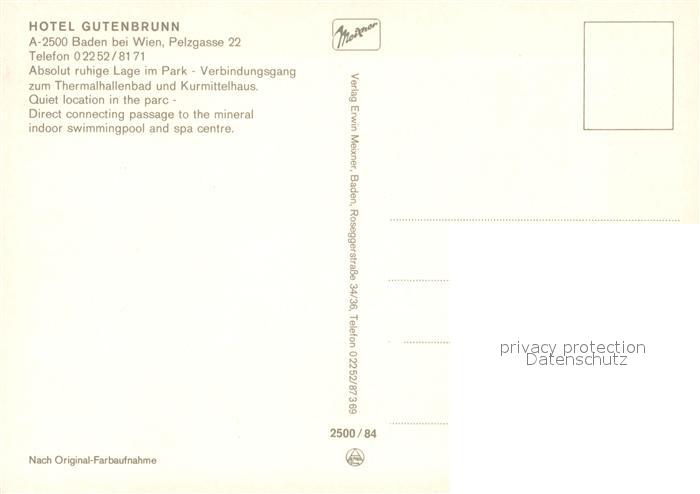 13326174 Baden Wien Hotel Gutenbrunn postalisch nicht gelaufen Erhaltung siehe scans [KathaD81] KatCode: 11390127030604
