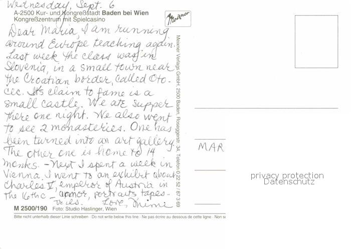 72903673 Baden Wien Kongresszentrum mit Spielcasino postalisch nicht gelaufen Erhaltung siehe scans [FriedD77] KatCode: 11390127030604