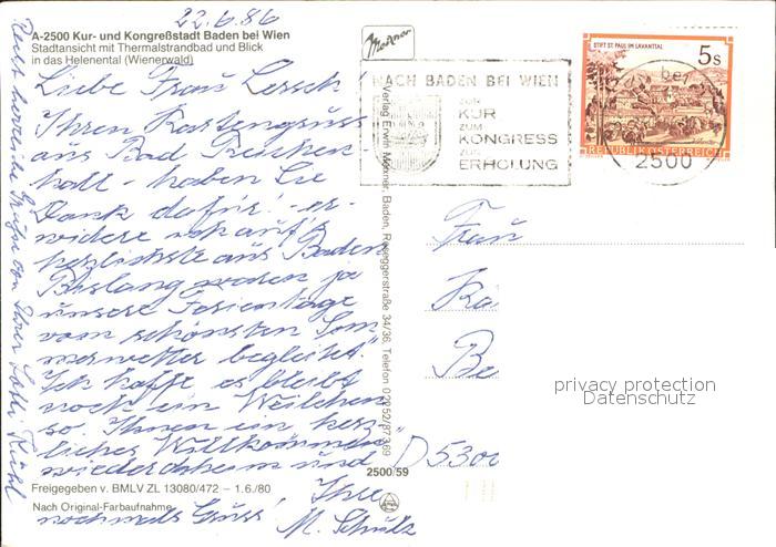 71972600 alte Postkarte Baden Wien Kur und Kongressstadt postalisch gelaufen Erhaltung siehe scans KatCode: 11390127030604