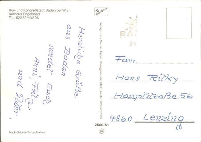 71431728 alte Postkarte Baden Wien Kurhaus Engelsbad Hallenbad postalisch gelaufen Erhaltung siehe scans KatCode: 11390127030604