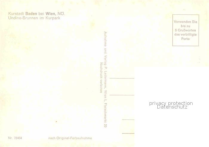 72906951 Baden Wien Kurstadt Undine-Brunnen im Kurpark postalisch nicht gelaufen Erhaltung siehe scans [LiesaD40] KatCode: 11390127030604
