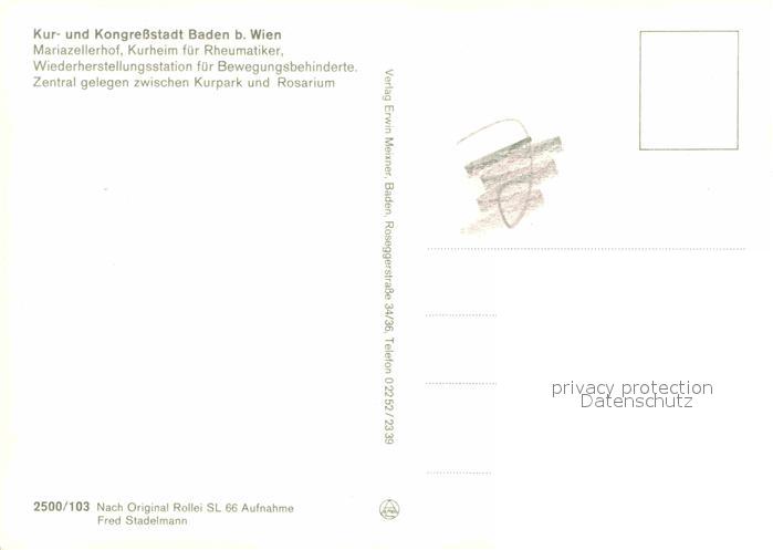 Baden Wien Mariazellerhof Kurheim Kur und Kongressstadt