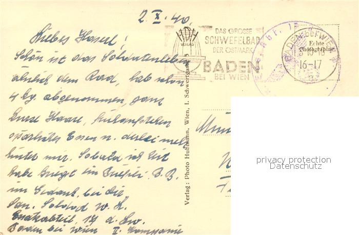 73328411 alte Postkarte Baden Wien Ruine Rauhenstein postalisch gelaufen Erhaltung siehe scans [KathaD81] KatCode: 11390127030604