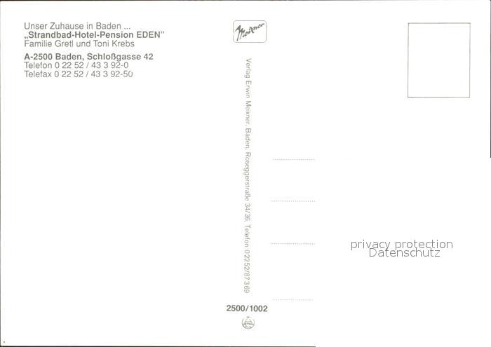72073327 Baden Wien Strandbad Hotel Pension Eden postalisch nicht gelaufen Erhaltung siehe scans KatCode: 11390127030604