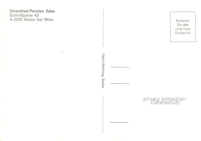73588122 Baden Wien Strandbad Pension Eden Terrasse Foyer postalisch nicht gelaufen Erhaltung siehe scans [FriedD77] KatCode: 11390127030604