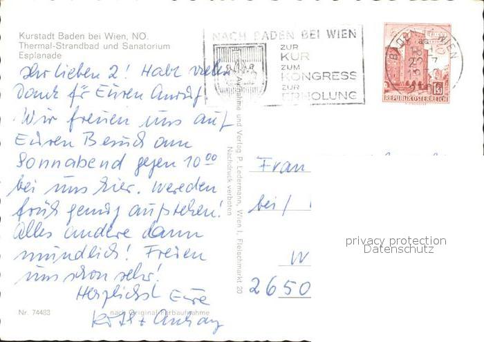 71935496 alte Postkarte Baden Wien Thermal Strandbad Sanatorium Esplanade postalisch gelaufen Erhaltung siehe scans KatCode: 11390127030604