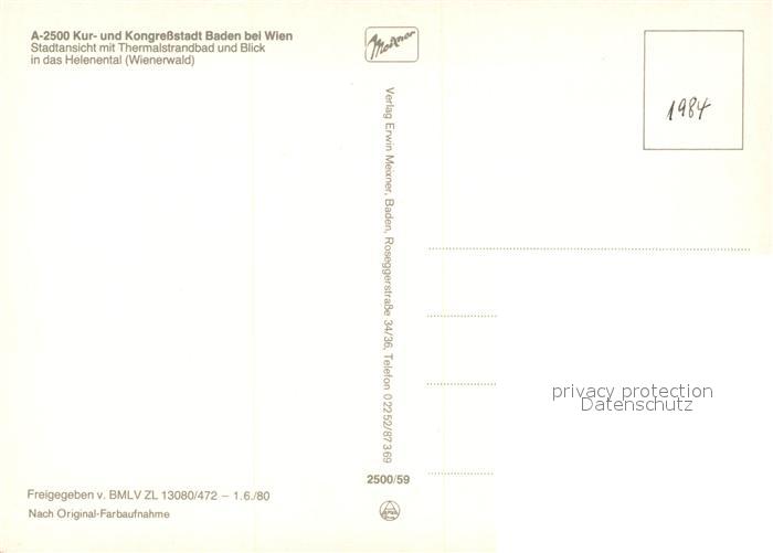 73125240 Baden Wien Thermalstrandbad Helenental postalisch nicht gelaufen Erhaltung siehe scans [NatalD47] KatCode: 11390127030604