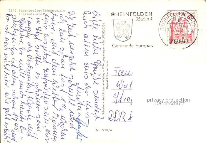 alte Postkarte Badenweiler postalisch gelaufen Erhaltung siehe scans