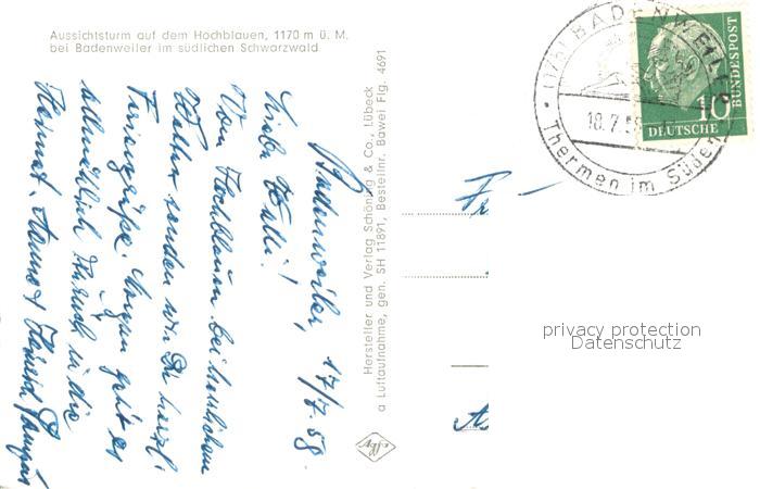 73616465 alte Postkarte Badenweiler Aussichtsturm auf dem Hochblauen Fliegeraufnahme postalisch gelaufen Erhaltung siehe scans [WerneD78] KatCode: 11110008315007