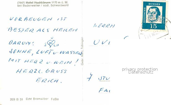 72842144 alte Postkarte BADENWEILER BW Alpenblick vom Hochblauen Schwarzwald Bromsilber postalisch gelaufen Erhaltung siehe scans [FriedD77] KatCode: 11110008315007