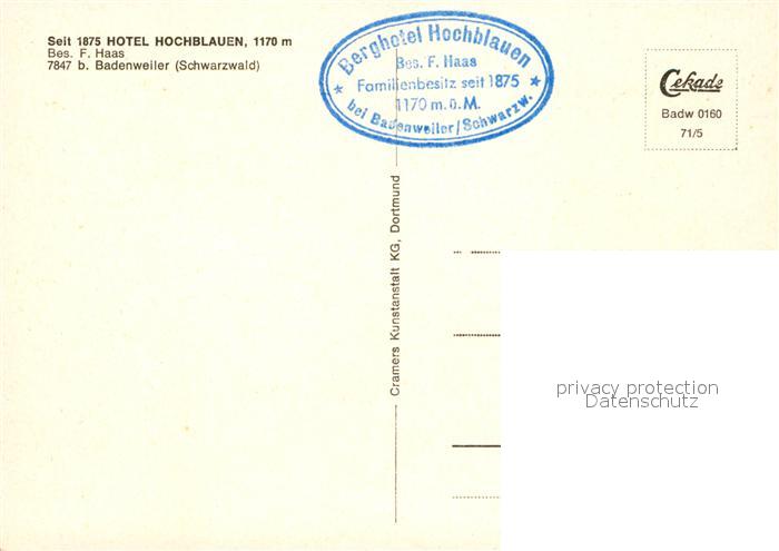 73095793 BADENWEILER BW Berghotel Hochblauen postalisch nicht gelaufen Erhaltung siehe scans [NatalD47] KatCode: 11110008315007