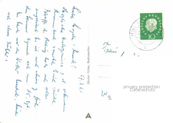 72761913 alte Postkarte BADENWEILER BW Blick von Burgruine Thermal-Schwimmbad Kurpark Markgrafen-Bad postalisch gelaufen Erhaltung siehe scans [LiesaD40] KatCode: 11110008315007