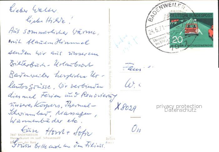 72375257 alte Postkarte BADENWEILER BW Burgruine Panorama postalisch gelaufen Erhaltung siehe scans KatCode: 11110008315007