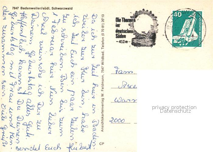 73133555 alte Postkarte BADENWEILER BW Fliegeraufnahme postalisch gelaufen Erhaltung siehe scans [NatalD47] KatCode: 11110008315007