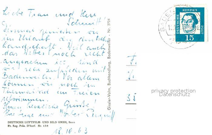 72891318 alte Postkarte BADENWEILER BW Fliegeraufnahme postalisch gelaufen Erhaltung siehe scans [PaolaD17] KatCode: 11110008315007