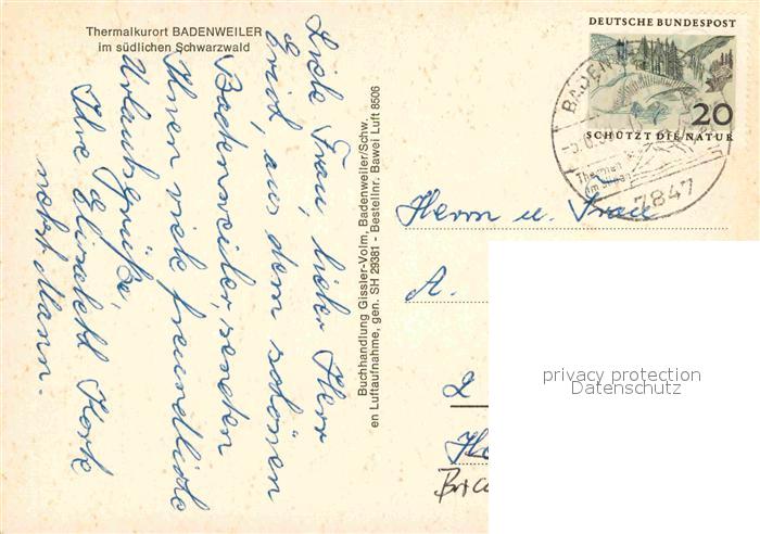 72824906 alte Postkarte BADENWEILER BW Fliegeraufnahme postalisch gelaufen Erhaltung siehe scans [LiesaD40] KatCode: 11110008315007