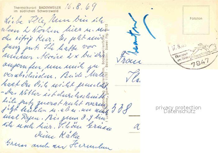 72691539 alte Postkarte BADENWEILER BW Fliegeraufnahme postalisch gelaufen Erhaltung siehe scans [LiesaD40] KatCode: 11110008315007