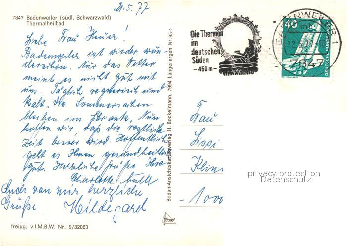 73107095 alte Postkarte BADENWEILER BW Fliegeraufnahme postalisch gelaufen Erhaltung siehe scans [KathaD81] KatCode: 11110008315007