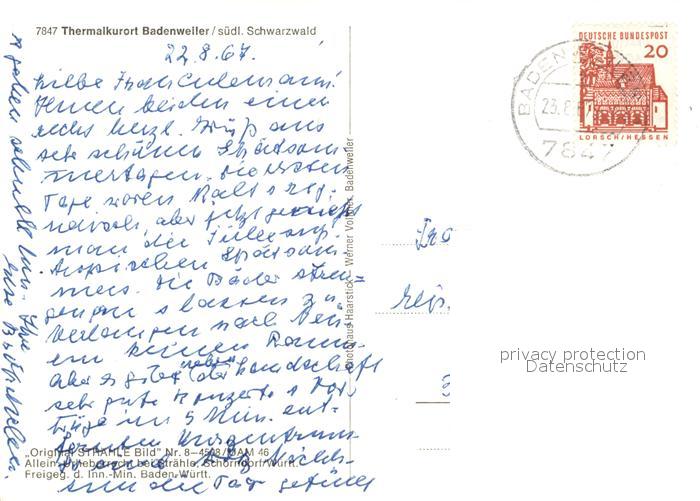 73095256 alte Postkarte BADENWEILER BW Fliegeraufnahme postalisch gelaufen Erhaltung siehe scans [KathaD81] KatCode: 11110008315007