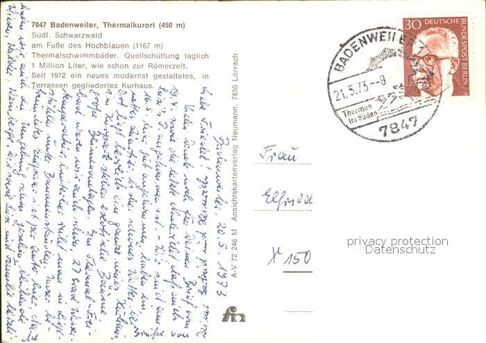 72304841 alte Postkarte BADENWEILER BW Fliegeraufnahme postalisch gelaufen Erhaltung siehe scans KatCode: 11110008315007