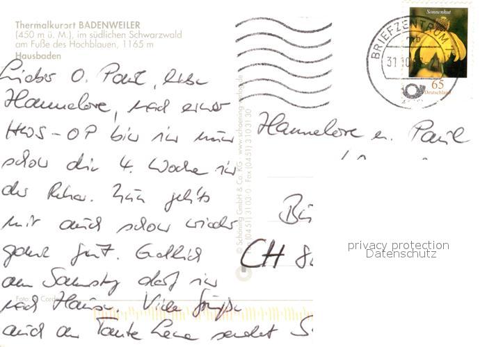 73107263 alte Postkarte BADENWEILER BW Fliegeraufnahme Hausbaden postalisch gelaufen Erhaltung siehe scans [KathaD81] KatCode: 11110008315007