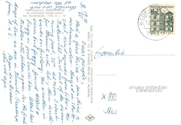 73109296 alte Postkarte BADENWEILER BW Fliegeraufnahme Hochblauen postalisch gelaufen Erhaltung siehe scans [KathaD81] KatCode: 11110008315007
