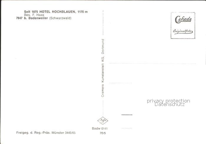 72168338 BADENWEILER BW Fliegeraufnahme Hotel Hochblauen postalisch nicht gelaufen Erhaltung siehe scans KatCode: 11110008315007