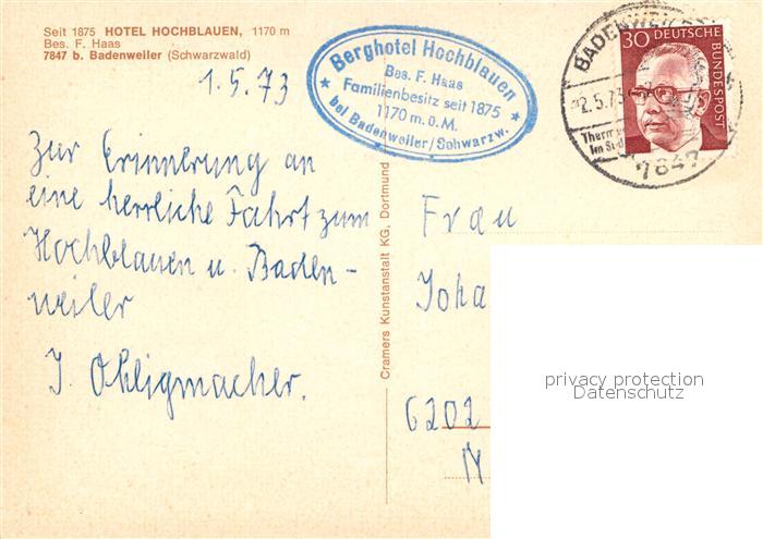 73005248 alte Postkarte BADENWEILER BW Fliegeraufnahme Hotel Hochblauen Terrasse Gastraeume Aussichtsturm postalisch gelaufen Erhaltung siehe scans [WerneD78] KatCode: 11110008315007